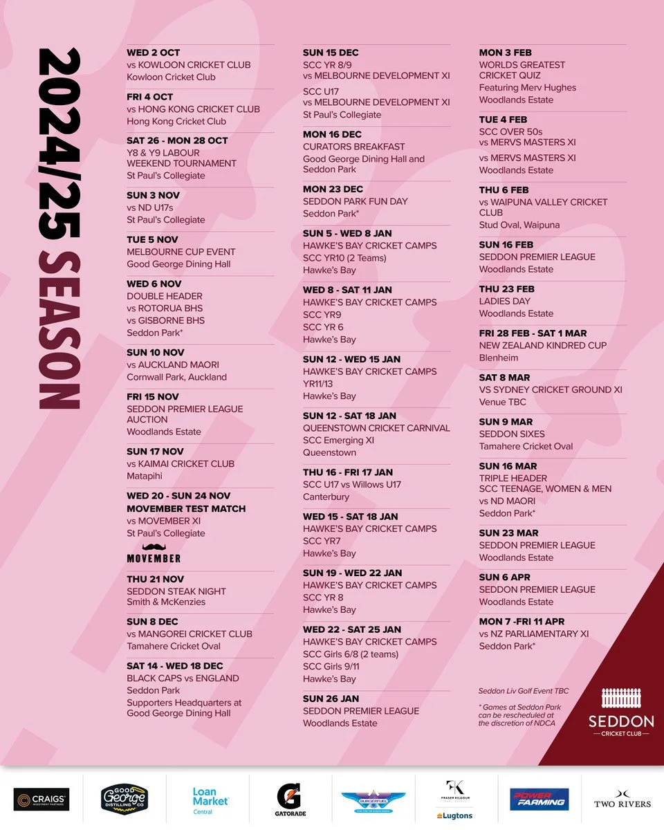 Season 2024 / 2025 Please tell us your availability: Name Phone * Email * Sunday 3 Nov vs ND U17 Venue: St Paul's Collegiate Select Option Yes - Available No - Not available I'm not sure Wednesday 6 Nov - Double Header at Seddon Park vs Rotorua BHS vs Gisborne BHS Select Option Yes - I'm Available No - I'm Not Available I'm not sure Sunday 10 Nov vs Auckland Maori Venue: Cornwall Park, Auckland Select Option Yes, I'm Available No, I'm not Available I'm not sure Sunday 17 Nov vs Kaimai Cricket Club Venue: Matapihi Select Option Yes, I'm Available No, I'm Not Available I'm not sure Sunday 8 Dec vs Mangorei Cricket Club Venue: Tamahere Cricket Oval Select Option Yes, I'm Available No, I'm Not Available I'm Not Sure Tuesday 4 Feb vs Merv's Masters XI (OVER 50s) SCC Over 50s vs Merv's Masters XI Select Option Yes, I'm Available No, I'm Available I'm Not Sure Tuesday 4 Feb vs Merv's Masters XI (MEN) SCC vs Merv's Masters XI Select Option Yes, I'm Available No, I'm Not Available I'm Not Sure Thursday 6 Feb vs Waipuna Valley Cricket Club Venue: Stud Oval, Waipuna Select Option Yes, I'm Available No, I'm Not Available I'm Not Sure Fri 28 Feb - Sat 1 Mar - NZ Kindred Cup Venue: Blenheim Select Option Yes, I'm Available No, I'm Not Available I'm Not Sure Saturday 8 March vs Sydney Cricket Ground XI Venue: TBC Select Option Yes, I'm Availble No, I'm Not Available I'm Not Sure Sunday 16 March - Triple Header (MEN) Men vs ND Maori @ Seddon Park Select Option Yes, I'm Available No, I'm Not Available I'm Not Sure Saturday 16 March - Triple Header (WOMEN) Women vs ND Maori @ Seddon Park Select Option Yes, I'm Available No, I'm Not Available I'm Not Sure Saturday 16 March - Triple Header (TEEN) Teen vs ND Maori @ Seddon Park Select Option Yes, I'm Available No, I'm Not Available I'm Not Sure Thank you!